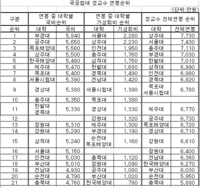 Á¤ ±³¼ö´Â ¡°±¹¸³´ë ±³¼öÀÇ Æò±Õ¿¬ºÀÀº ¼¿ï´ë¸¦ Á¦¿ÜÇϰí ÀϹÝÁ÷ °ø¹«¿ø 5~6±Þ ¼öÁØ¿¡ ºÒ°úÇÑ ½ÇÁ¤¡±À̶ó¸ç ¡°±â¼ºÈ¸ºñ´Â °á±¹ ÇлýµéÀÇ ºÎ´ãÀÎ ¸¸Å ±¹ºñ¸¦ Áõ¾×½ÃŰ°í ¿¬ºÀü°è¸¦ ÀçÆíÇØ ±³¼öµéÀÇ Ã³¿ì¸¦ °³¼±ÇØ¾ß ÇÒ Çʿ䰡 ÀÖ´Ù¡±°í °Á¶Çß´Ù.