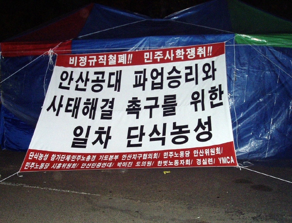 ÇÑÆí, ¾È»ê°ø´ë ºñÁ¤±ÔÁ÷ öÆó µîÀ» À§ÇØ Áö³ 8¿ù Ãâ¹üÇÑ ¾È»êÁö¿ª °øµ¿´ëÃ¥À§¿øÈ¸´Â Áö³ 2ÀϺÎÅÍ Çб³ ÃøÀÇ ºü¸¥ »çÅÂ ÇØ°áÀ» ¿ä±¸ÇÏ¸ç ´Ü½Ä ³ó¼º¿¡ µé¾î°¬´Ù.