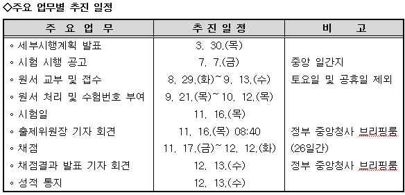 ¼ö´É Á¡¼ö´Â ¿µ¿ª¡¤°ú¸ñº° Ç¥ÁØÁ¡¼ö¿Í ¹éºÐÀ§, µî±Þ(9µî±Þ)¸¸ Á¦°øÇÏ´Â µî ³ª¸ÓÁö´Â Áö³ÇØ¿Í °°Àº üÁ¦·Î ½ÃÇàÇÑ´Ù. ÈÞ´ëÀüÈ, µðÁöÅÐÄ«¸Þ¶ó, MP3, ÀüÀÚ»çÀü, ÀüÀÚ°è»ê±â, Ä«¸Þ¶óÆæ µî ½ÃÇè½Ç ¹ÝÀÔ ±ÝÁö¹°Ç°À» ¹ÝÀÔÇϰí 1±³½Ã ½ÃÀÛ Àü¿¡ Á¦ÃâÇÏÁö ¾ÊÀ¸¸é ºÎÁ¤ÇàÀ§·Î °£ÁÖµÅ ÇØ´ç ½ÃÇèÀ» ¹«È¿·Î ó¸®Çϰí 1³â°£ ÀÀ½Ã±âȸ¸¦ ¹ÚÅ»ÇÑ´Ù.