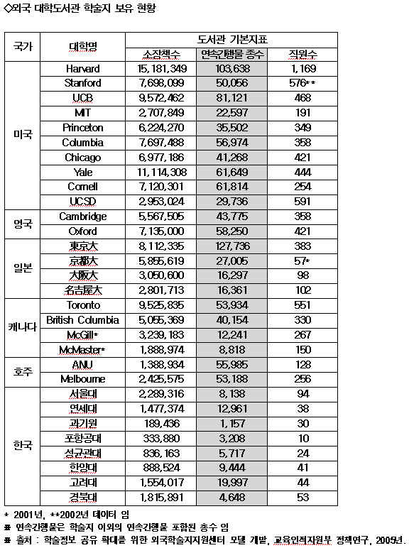 Àü ¼¼°èÀûÀ¸·Î À¯ÅëµÇ´Â Àμâ ÇмúÁö Áß¿¡ °´°üÀûÀ¸·Î ÀÎÁ¤¹Þ´Â ÇмúÁö´Â 1¸¸8,000~2¸¸Á¾Àε¥ ¹ÝÇØ ±¹³» Àüü ´ëÇÐ µµ¼°üÀÌ ±¸µ¶ÇÏ´Â ¿Ü±¹ÇмúÁö´Â 1¸¸Á¾ ¹Ì¸¸ÀÎ °ÍÀ¸·Î ¾Ë·ÁÁ® ÀÖ´Ù.