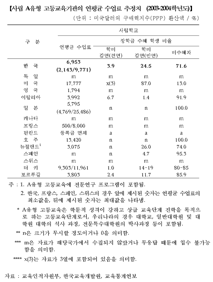 OECD ±¹°¡µéÀÇ »ç¸³´ë(4³âÁ¦ ÀϹݴëÇÐ) ¿¬Æò±Õ ¼ö¾÷·á ºñ±³