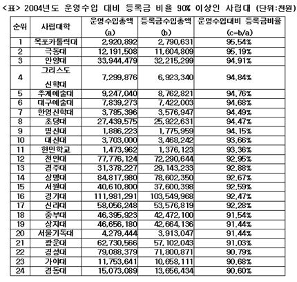 ¹Ý¸é »ç¸³´ëÇÐÀÇ µî·Ï±Ý ÀÇÁ¸À²ÀÌ 70%¸¦ ¿ôµ¹¾Æ ¡®»ç¸³´ë¡¯ ÀçÁ¤±¸Á¶°¡ ´ë´ÜÈ÷ Ãë¾àÇÑ °ÍÀ¸·Î µå·¯³µ´Ù.