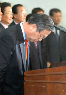 | ¡ã »ç°ú¹®À» ¹ßÇ¥ÇÑ ÈÄ °í°³ ¼÷¿© »çÁËÀÇ ¶æÀ» ¹àÈ÷°í ÀÖ´Â ¾ÈÀå°ü./ÇÑ¸í¼· ±âÀÚ |