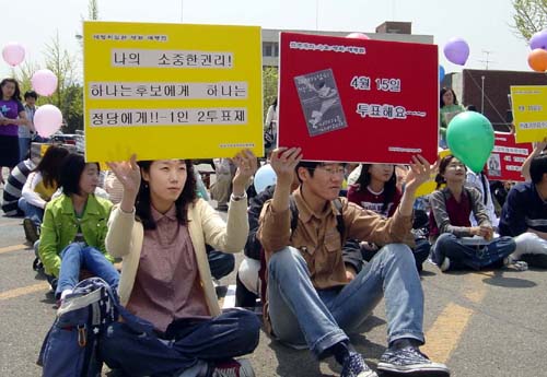 ÃÑÇлýȸ Çлýµéµµ Çб³°Ô½ÃÆÇ °÷°÷¿¡ °¢ Á¤´çº° Á¤Ã¥ºñ±³¸¦ °ÔÀçÇØ À¯±ÇÀÚµéÀÇ ¿Ã¹Ù¸¥ ¼±ÅÃÀ» µ¶·ÁÇϰí ÀÖ´Ù.
