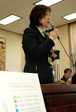 | ¡ã Áö³ 28ÀÏ ±¹È¸ ±³À°À§ ÀüüȸÀÇ¿¡ Âü¼®ÇÑ °Ç±¹´ë ±è°æÈñ ÀÌ»çÀåÀÌ °Ç±¹´ë ½ºÅ¸½ÃƼ ƯÇý ÀÇȤÀ» °ÇÏ°Ô ºÎÀÎÇϰí ÀÖ´Ù. / ±èÁØ ±âÀÚ |