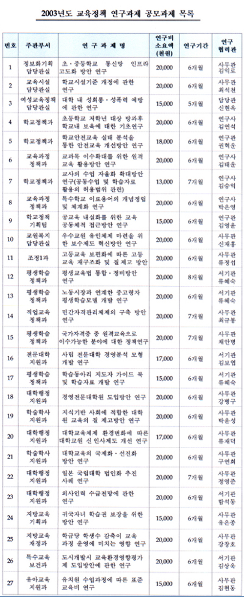È®Á¤µÈ Á¤Ã¥ ¿¬±¸ °úÁ¦´Â ¶Ç ¡â°æ¿µÀü¹®´ëÇпø µµÀÔ¹æ¾È(´ëÇÐÇàÁ¤Áö¿ø°ú), ¡â´ëÇпø ±³À° Áú Á¦°í ¹æ¾È(´ëÇÐÇмúÇлç°ú), ¡â´ëÇб³À°ÀÇ ±¹Á¦È¡¤¼±ÁøÈ ¹æ¾È(´ëÇÐÇàÁ¤Áö¿ø°ú) µî °íµî ±³À° Áú °ü¸®¿Í üÁ¦ º¯È¿¡ ¿µÇâÀ» ¹ÌÄ¥ ÁÖ¿ä °úÁ¦µµ Æ÷ÇԵƴÙ.
