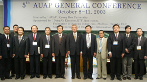 | ¡ã Áö³ 9ÀÏ ¿¸° AUAP ±¹Á¦È¸ÀÇ °³¸·½Ä¿¡¼ Á¶Á¤¿ø ÃÑÀå(¿ÞÂÊ¿¡¼ ´Ù¼¸¹øÂ°)ÀÌ È¸¿ø´ëÇÐ ÃÑÀåµé°ú ±â³äÃÔ¿µÀ» Çϰí ÀÖ´Ù. |