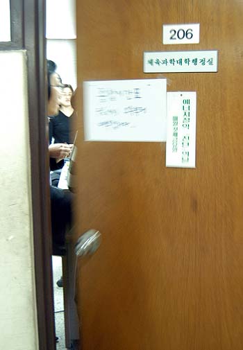 | ¡ã ÀÌÈ¿©´ë üÀ°°úÇдëÇÐ ÇàÁ¤½Ç¿¡¼´Â ¿ÀÀüºÎÅÍ ±³¼öµéÀÌ ¸ð¿© ´ëÃ¥¸¶·Ã¿¡ ºÐÁÖÇÑ ¸ð½ÀÀ» º¸¿´´Ù. / ±èÁØ ±âÀÚ |