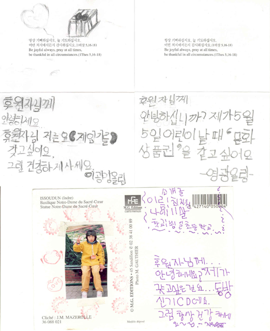 ¾î¸°À̵éÀÌ º¸³½ ¼Ò¸ÁÄ«µå¿¡´Â ¹®È»óǰ±Ç, °ÔÀÓ±â, ¹®Á¦Áý, ¼Õ¸ñ½Ã°è µî ¾î¸°À̳¯ ¹Þ°í ½ÍÀº ¼±¹° À̸§ÀÌ ÀûÇô ÀÖ°í, ÈÄ¿øÀÚµéÀÇ ¾ÈºÎ¸¦ ¹¯´Â ³»¿ëµµ ÀÖ´Ù.