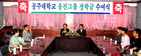 °øÁÖ´ë È«º¸Çù·Â°ú À̽·ľ¾´Â "À̹ø ÀåÇÐ±Ý Àü´ÞÀº Áö¿ª´ëÇÐ ¹ßÀüÀ» À§ÇÑ ÃëÁö¿¡¼ ¿õÁø±×·ì°ú °øÁÖ´ë°£¿¡ ÁøÇàµÇ´Â ´Ù¾çÇÑ Çù·ÂÇÁ·Î±×·¥ÀÇ ÀÏȯ"À̶ó¸ç "¿õÁø±×·ì Ãø¿¡¼ ¸Å³â ÀåÇбÝÀ» Áö±ÞÇϰڴٴ Àǻ縦 ¹àÇô¿Ô´Ù"°í µ¡ºÙ¿´´Ù.