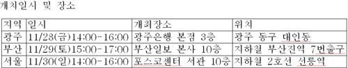 Æ÷Ç×°ø´ë´Â 28ÀÏ(±Ý) ±¤ÁÖ±¤¿ª½Ã µ¿±¸ ´ëÀε¿ ¼ÒÀç ±¤ÁÖÀºÇà º»Á¡, 29ÀÏ(Åä) ºÎ»êÀϺ¸ º»»ç 10Ãþ ¼Ò°´ç, 30ÀÏ(ÀÏ) ¼¿ï »ï¼ºµ¿ Æ÷½ºÄÚ¼¾ÅÍ ¼°ü 4Ãþ¿¡¼ °¢°¢ ÀԽü³¸íȸ¸¦ °³ÃÖÇÑ´Ù.