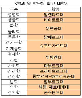 Çаúº° Æò°¡¿¡¼´Â °æ¿µÇп¡ ¹ß·»´Ù¸£´ë, »ý¹°Çп¡ ¹ÙÀÌ·ÎÆ®´ë, ÈÇаú ¹°¸®Çп¡ ¹ÀÇî°ø´ë, µ¶¹®Çп¡ ¹ãº£¸£Å©´ë, Àü±â°øÇаú ±â°è°øÇп¡ ½´ÅõÆ®°¡¸£Æ®´ë, °æÁ¦Çаú ¼öÇп¡ Æ¢ºù¿£´ë, »çȸÇп¡ ¸¶ºÎ¸£Å©´ë, ½É¸®Çп¡ ÇÁ¶óÀ̺θ£Å©´ë, Àü»êÇп¡ ÇԺθ£Å©-ÇϺθ£Å©°ø´ë, ¹ýÇп¡ ÇԺθ£Å©´ë, ÀÇÇп¡ ºßÅÙ-Ç츣µ¥ÄÉ´ë, Á¤Ä¡Çп¡ ÄܽºÅºÃ÷´ëÇÐ µîÀÌ °¢°¢ ÃÖ°íÀÇ ÀÚ¸®¿¡ ¿Ã¶ú´Ù.