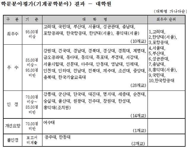 <Ç¥>Çй®ºÐ¾ßº° ´ëÇÐÆò°¡°á°ú(±â°è°øÇÐ)