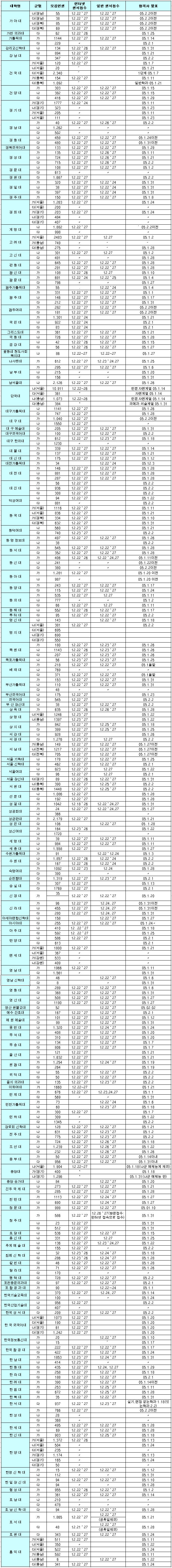 <Ç¥> Á¤½Ã¸ðÁý ´ëÇк° ¼±¹ßÀοø ¹× ÀÏÁ¤ -»ç¸³´ë-