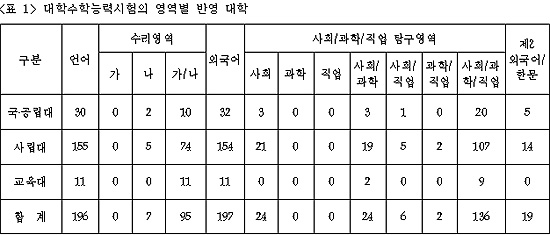 À̹ۿ¡µµ ¼ö¸®(°¡)Çü ¹Ý¿µ½Ã ¡®Çлý ÀÚÀ¯ ¼±Å᯿¡ ¸Ã±â´Â ´ëÇÐÀÌ 1¹é73°³±³À̰í, °ú¸ñÁöÁ¤ ´ëÇÐÀº ¼¿ï´ë °ø°ú´ëÇп¡¼ ¹ÌºÐ°ú ÀûºÐÀ» ÁöÁ¤Çß´Ù. »çȸޱ¸³ª °úÇÐŽ±¸¿µ¿ª ¿ª½Ã ´ëºÎºÐÀÇ ´ëÇÐÀÌ ÇлýµéÀÌ °ú¸ñÀ» ÀÚÀ¯ ¼±ÅÃÇϵµ·Ï ¸Ã±â°í ÀÖÀ¸³ª »çŽÀÇ °Ü¿ì ¼¿ï´ë´Â 4°³ °ú¸ñ¿¡ ±¹»ç¸¦ ÁöÁ¤ÇßÀ¸¸ç, °úŽÀÇ °æ¿ì ¼¿ï´ë°¡ ¥°+¥±,¥°,¥° µîÀ», Æ÷Ç×°ø´ë°¡ ¥±°ú¸ñ Áß 1°³ ÀÌ»ó, °¡ÃµÀÇ´ë°¡ »ý¹°¥°+¥±, ÈÇÐ¥°, ¸í½Å´ë°¡ ¹°¸®¥°,¥± µîÀ» ÁöÁ¤Çß´Ù.