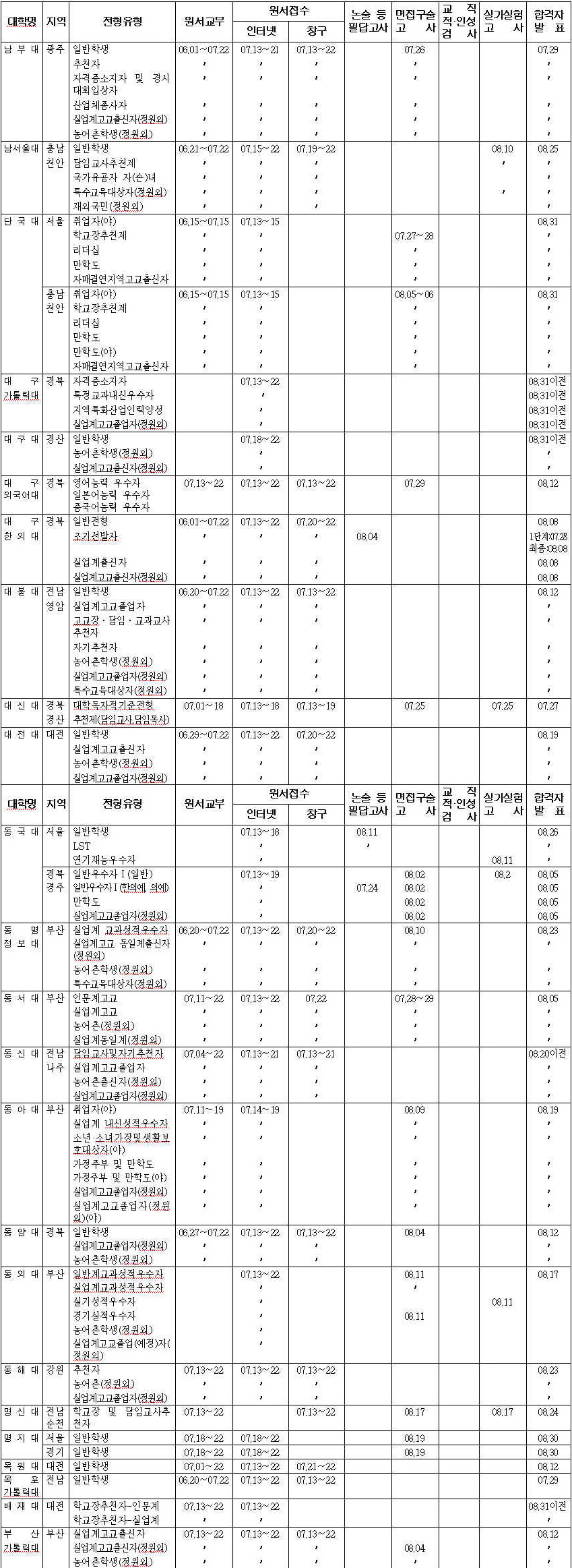 [¼ö½Ã 1Çбâ] ´ëÇк° ÀüÇü ÁÖ¿ä»çÇ× (3)³²ºÎ´ë~ºÎ»ê°¡Å縯´ë