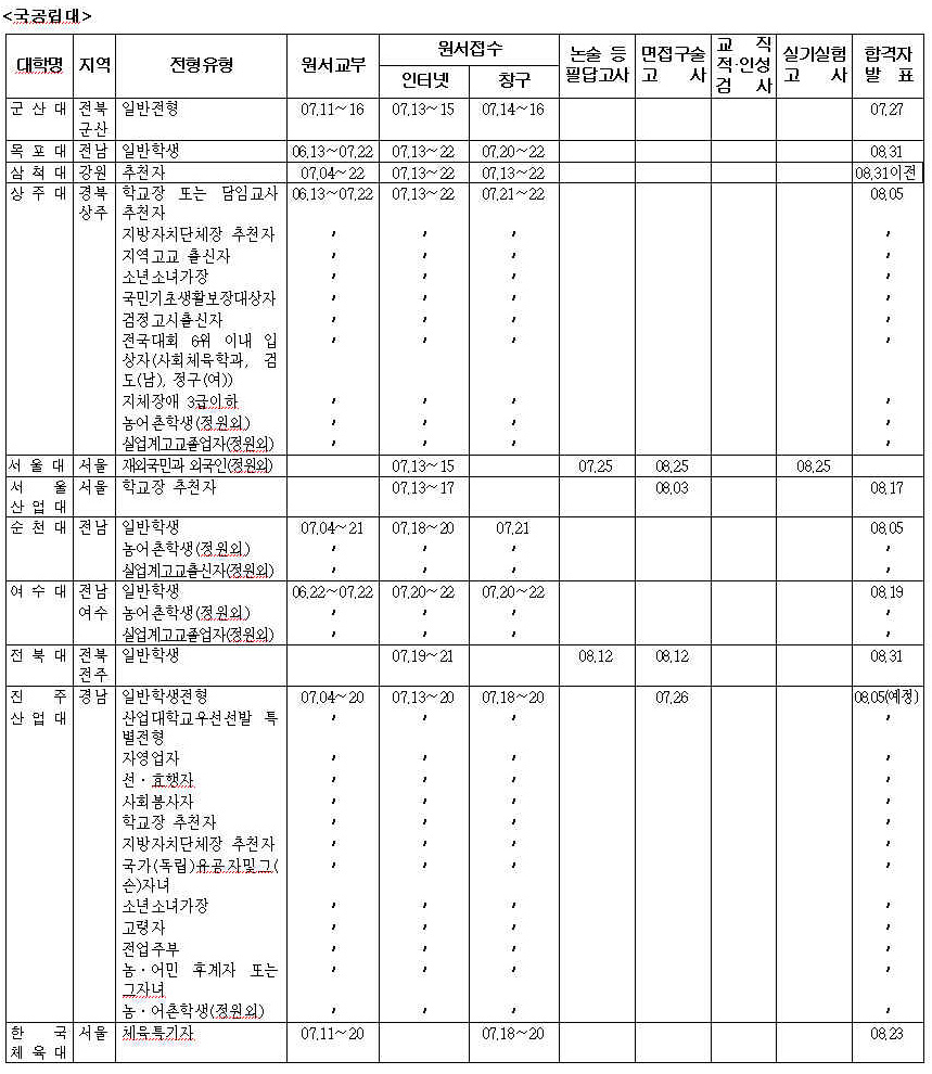 [¼ö½Ã 1Çбâ] ´ëÇк° ÀüÇü ÁÖ¿ä»çÇ× (1)±¹¡¤°ø¸³´ë(±º»ê´ë~Çѱ¹Ã¼À°´ë)