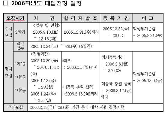 2006Çг⵵ ¼ö´É ¼ºÀûÀÌ ¿À´Â 12¿ù19ÀÏ ¼öÇè»ýµé¿¡°Ô Å뺸µÈ´Ù. ¼öÇè»ýµéÀº ´ëÇк° ÀüÇüÀÏÁ¤À» ²Ä²ÄÀÌ È®ÀÎÇÑÈÄ ³²Àº ¼ö½Ã 2Çбâ¿Í Á¤½Ã¸ðÁý¿¡ ÀÀ½ÃÇØ¾ß ÇÑ´Ù.