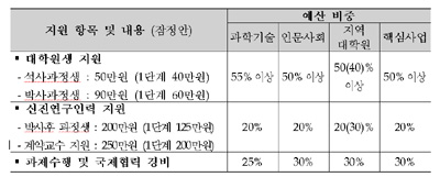 ºÐ¾ßº° ¿¹»êÀº ´ëÇпø»ý(¼®»ç°úÁ¤»ý 50¸¸¿ø, ¹Ú»ç°úÁ¤»ý 90¸¸¿ø), ½ÅÁø¿¬±¸ÀηÂ(¹Ú»çÈÄ °úÁ¤»ý 2¹é¸¸¿ø, °è¾à±³¼ö´Â 2¹é50¸¸¿ø), °úÁ¦¼öÇà ¹× ±¹Á¦Çù·Â °æºñ µîÀ̸ç, °úÇбâ¼úºÎ¿Í ¿¬°èÇØ ¡®±Û·Î¹ú Ä·ÆÛ½º »ç¾÷¡¯À» º°µµ ÃßÁøÇÑ´Ù.