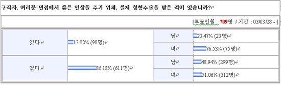 ¹Ýº¯ ±¸Á÷ÀÚµéÀÌ Ãë¾÷À» À§ÇØ ½ÇÁ¦ ¼ºÇü¼ö¼úÀ» ¹Þ¾Ò´Ù´Â ÀÀ´äÀÚ´Â 13.82%ÀÎ 98¸í¿¡ ±×ÃÆ´Ù.