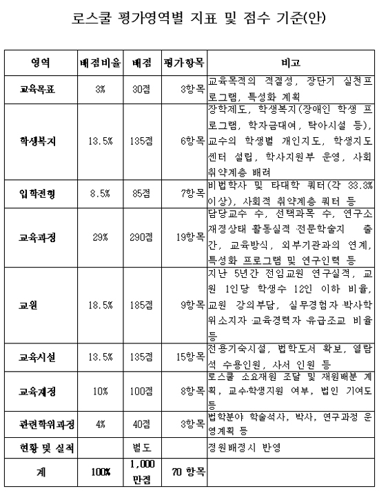 ±³À°ÀÎÀûÀÚ¿øºÎÀÇ ¿¬±¸¿ë¿ªÀ» ¹Þ¾Æ Áö³ 5¿ùºÎÅÍ ¡®¹ýÇÐÀü¹®´ëÇпø ¼³Ä¡ ¹× Àΰ¡½É»ç ±âÁØ¿¡ °üÇÑ ¿¬±¸¡¯¸¦ ÃßÁø ÁßÀÎ Á¤Ã¥¿¬±¸Áø(¿¬±¸Ã¥ÀÓÀÚ ±è½Åº¹ ¼¿ï´ë ±³¼ö)ÀÌ ½É»ç±âÁØ ¿¬±¸¾ÈÀ» ¸¶·Ã, ´ëÇаú °ü°è±â°üÀÇ Àǰ߼ö·Å¿¡ ³ª¼¹´Ù. <Ç¥ ÂüÁ¶>