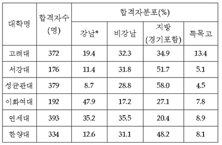 ÀÌ °á°ú 3°³ ´ëÇÐÀÇ ¼¿ï °³²±Ç ÇÕ°ÝÀÚ ºñÀ²Àº ÀÌÈ¿©´ë 36.1%°¡ °¡Àå ³ô¾ÒÀ¸¸ç, ¿¬¼¼´ë 35.3%, °í·Á´ë 18.2% µîÀ¸·Î ÇÔ²² ½ÇÅÂÁ¶»ç¸¦ ¹ÞÀº ´Ù¸¥ 3°³ ´ëÇÐ(8.3~12.6%)º¸´Ù ¿ùµîÈ÷ ³ô¾Ò´Ù.