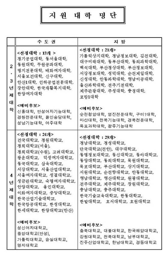 ³ëµ¿ºÎ´Â 23ÀÏ »ç¾÷ ´ë»ó ´ëÇÐÀ¸·Î 2¡¤3³âÁ¦ ´ëÇÐ 34°³ ´ëÇÐ, 4³âÁ¦ ´ëÇÐ 53°³ ´ëÇÐÀ» °¢°¢ ¼±Á¤Çß´Ù°í ¹àÇû´Ù. ÇØ´ç ´ëÇе鿡°Ô Áö±ÞµÇ´Â Æò±Õ Áö¿ø±ÝÀº 1¾ï1õ5¹é¸¸¿øÀ̸ç ÃÖ´ë Áö¿ø±ÝÀº 2¾ï7õ¿©¸¸¿øÀÌ´Ù.