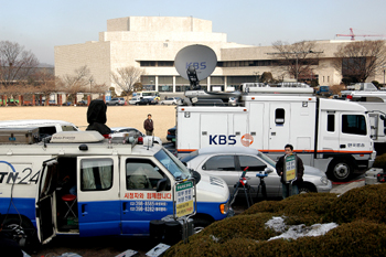 | ¡ã 11ÀÏ Á¤ ÃÑÀåÀÇ ´ë±¹¹Î »ç°ú¸¦ »ýÁß°èÇϱâ À§ÇØ ¼¿ï´ë º»ºÎ ¾Õ¿¡ Æ÷ÁøÇÑ ¹æ¼ÛÂ÷·®µé./ÇÑ¸í¼· ±âÀÚ |