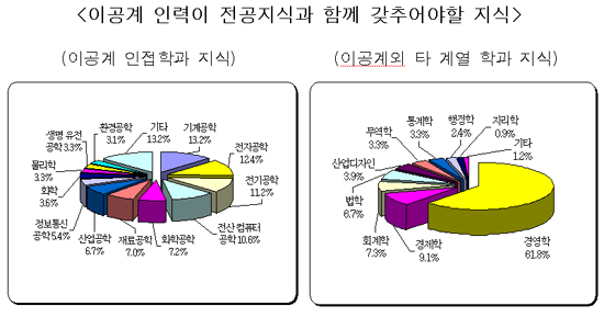 À̰ø°è Á¹¾÷ÀÚ°¡ ÇØ´ç Àü°øÁö½Ä°ú ÇÔ²² °®Ãç¾ß ÇÒ À̰ø°è ÀÎÁ¢Çаú Áö½ÄÀº ±â°è°øÇÐÀÌ 13.2%·Î °¡Àå ¸¹¾Ò°í, ´ÙÀ½À¸·Î ÀüÀÚ°øÇÐ 12.4%, Àü±â°øÇÐ 11.2%, Àü»ê.ÄÄÇ»ÅÍ °øÇÐ 10.6% µîÀÇ ¼øÀ¸·Î ³ªÅ¸³µ´Ù.