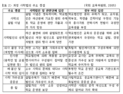 ÀÌ·± ºñÆÇÀº ½Ã´ë º¯È¿¡ µû¶ó »ç¸³Çб³°¡ ¼³¸³ÀÚ °³ÀÎÀÌ ¼¼¿î »çÀû Àç»êÀ̶ó´Â ±âº» ÀνĿ¡¼ ³ª¾Æ°¡ ±³À°ÀÇ °ø°ø¼ºÀ» °Á¶ÇÏ´Â °øÀû Àç»êÀÇ ÀÇ¹Ì·Î ÇØ¼®µÇ¸é¼ ³í¶õÀÌ È®´ëµÇ¾ú´Ù. ƯÈ÷ ¿¸°¿ì¸®´çÀÌ ¸¶·ÃÇÑ °³Á¤ »çÇйýÀ» ³õ°í »çÇйýÀΰú ±³À° ½Ã¹Î ´Üü °£¿¡ ¹ú¾îÁø ½Ã°¢Â÷´Â »çÇÐÀÇ ¼³¸³À̳信¼ºÎÅÍ »çÇйýÀÎÀÇ ¼º°Ý, Àλç±Ç, ÀÇ»ç°áÁ¤±¸Á¶¿¡ À̸£±â±îÁö ÀÔÀåÂ÷À̰¡ ±Ø¸íÇÏ´Ù. <Ç¥ 2>