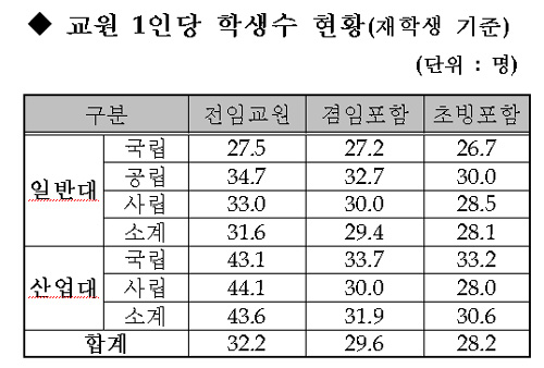°âÀÓ ¹× Ãʺù ±³¼öÀÇ °æ¿ì ´ã´ç ½Ã°£ÀÌ 9½Ã°£ÀÏ °æ¿ì 1¸íÀ¸·Î ȯ»ê, 4³âÁ¦ ´ëÇÐÀº ±³¼ö È®º¸À² »êÁ¤½Ã 20%±îÁö, »ê¾÷´ë´Â 50%±îÁö ÀÎÁ¤ÇØ ÁÖ°í ÀÖ´Ù.