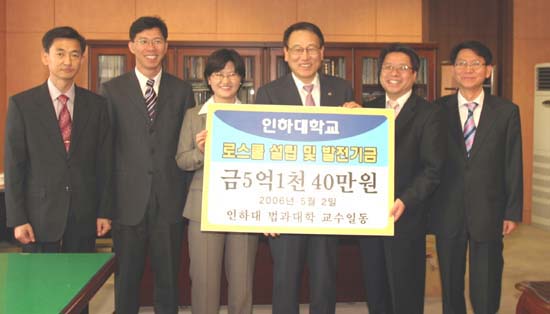 ¹ý´ë ±³¼öµéÀº Áö³ 2001³â ÀÌ ´ëÇÐ °ø´ë Ãâ½Å CEOµé°ú »ç¹ý°í½Ã»ýÀÇ 1:1 ÀڸŰῬÀ» ÅëÇØ 1¾ï 5õ¸¸¿øÀ» Áö¿ø¹ÞÀº °ÍÀ» °è±â·Î Á¦ÀÚ»ç¶ûÀ» À§ÇÑ ¹ßÀü±â±Ý ¸ðÀ¸±â¿¡ ÀÚ¹ßÀûÀ¸·Î ³ª¼°í ÀÖ´Ù.