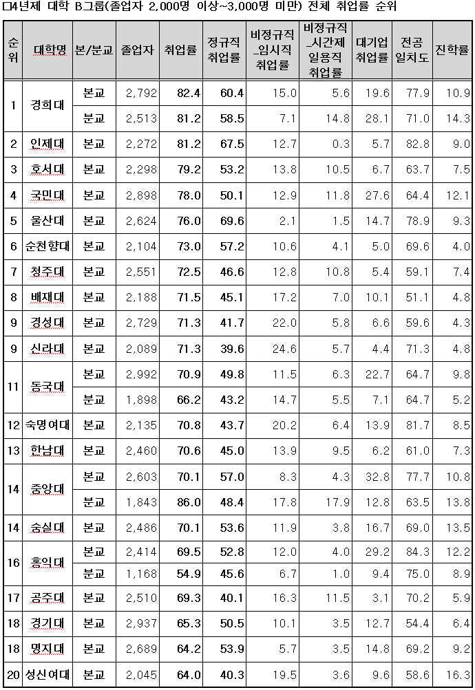 Àü±¹ 4³âÁ¦ ´ëÇÐ Àüü Ãë¾÷·ü ¼øÀ§(Á¹¾÷»ý 2,000¸í ÀÌ»ó 3,000¸í ¹Ì¸¸)