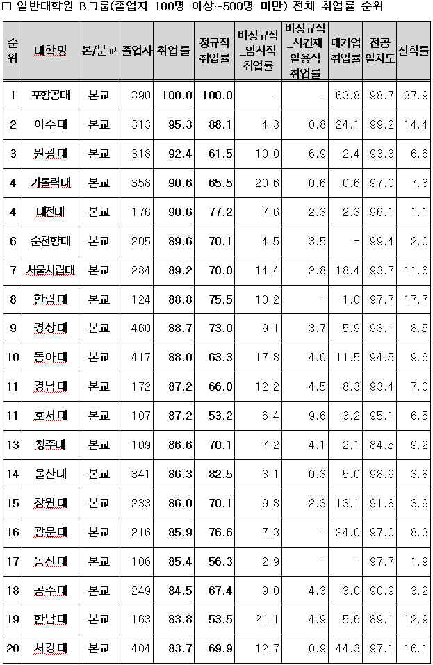 [Ç¥]ÀϹݴëÇпø Àüü Ãë¾÷·ü ¼øÀ§(Á¹¾÷»ý 100~500¸í)