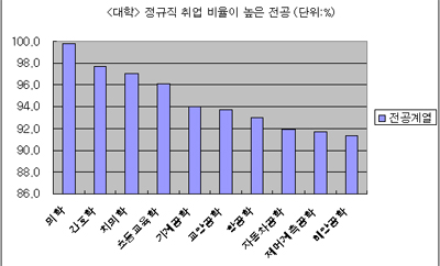 Á¤±ÔÁ÷ Ãë¾÷·üÀÌ ³ôÀº Çаú´Â ¿¹»ó´ë·Î ÀÇÇÐ, °£È£ÇÐ, Ä¡ÀÇÇÐ µî ÀÇÇаè¿ÀÌ 1~3À§¸¦ Â÷ÁöÇßÀ¸¸ç, À̾î ÃʵÀ°ÇÐ, ±â°è°øÇÐ, ±³¾ç°øÇÐ, Ç×°øÇÐ, ÀÚµ¿Â÷°øÇÐ, Á¦¾î°èÃø°øÇÐ, ÇØ¾ç°øÇÐ µîÀÌ 10À§±Ç¿¡ ¾È¿¡ µé¾î °øÇÐ°è¿ °¼¼¸¦ º¸¿´´Ù.