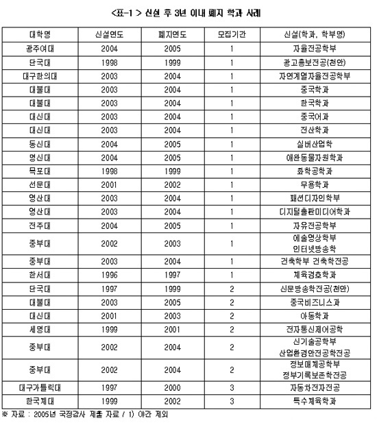 Àü±¹´ëÇг뵿Á¶ÇÕ(À§¿øÀå ±Ý±â¼Û¡¤ÀÌÇÏ ´ëÇгëÁ¶)ÀÌ ÃÖ±Ù 2005³â ±¹°¨ÀڷḦ ºÐ¼®ÇÑ °á°ú¿¡ µû¸£¸é ±¤ÁÖ¿©´ë µî ÀϺδëÇп¡¼ ÆíÁ¦°¡ ä ¿Ï¼ºµÇÁö ¾ÊÀº ½Å¼³ÇаúµéÀ» ÆóÁöÇÏ´Â µî ½ÃÇàÂø¿À¸¦ °Þ°í ÀÖ´Â °ÍÀ¸·Î ³ªÅ¸³µ´Ù.