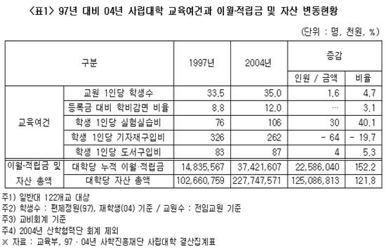 Çѱ¹´ëÇб³À°¿¬±¸¼Ò ÃøÀº ¡°Çб³ ÃÑÀÚ»êÀÇ Áõ°¡ ÀÚü´Â ¹®Á¦°¡ µÇÁö ¾ÊÁö¸¸, ´ëÇеéÀÇ ´©Àû ÀÌ¿ù․Àû¸³±Ý°ú ÃÑ ÀÚ»êÀÇ Áõ°¡ÃßÀ̰¡ ºñ½ÁÇÑ ¾ç»óÀ» ³ªÅ¸³»°í ÀÖ´Â »óȲÀº µî·Ï±ÝÀ» ÀλóÇØ ¿Â ´ë´Ù¼ö »ç¸³´ëµéÀÌ ÀÚ»êÀ» ºÒ¸®´Âµ¥ ÁÖ·ÂÇϰí ÀÖ´Ù´Â ÀÇȤÀ» »ç½Ç·Î µÞ¹ÞħÇÑ´Ù¡±°í °Á¶Çß´Ù.