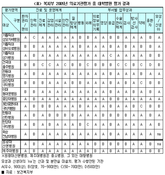 4¹éº´»ó ÀÌ»ó ´ëÇü ´ëÇÐ º´¿ø °¡¿îµ¥ ºÎ¹®º°·Î ¡®¹ÌÈíÇÏ´Ù¡¯´Â ³«Á¦Á¡À» ¹ÞÀº º´¿øµµ ÀÖ´Ù. ¡®ÁßȯÀÚ¡¯ ºÎ¹®¿¡¼ °Ç±¹´ë ÃæÁÖº´¿øÀÌ Dµî±ÞÀ» ¹Þ¾Ò´Ù.