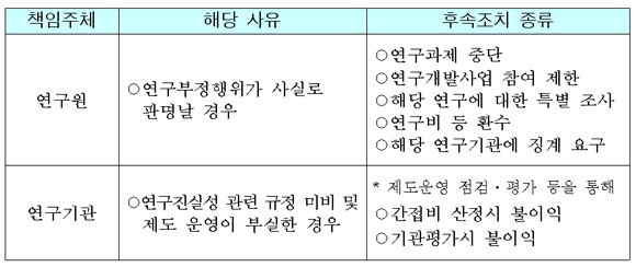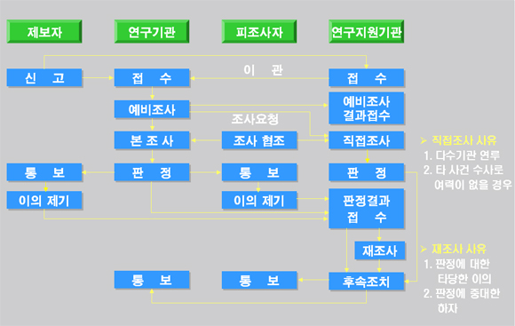 ÀÌ ¾È¿¡ µû¸£¸é ¿¬±¸ºÎÁ¤ÇàÀ§°¡ ¹ß»ýÇßÀ» °æ¿ì 1Â÷ÀûÀÎ °ËÁõÃ¥ÀÓÀº ÇØ´ç¿¬±¸±â°ü¿¡ ÀÖÀ¸¸ç ÇØ´ç¿¬±¸±â°üÀº °ËÁõÀ» ¸¶Ä£ µÚ ±× °ËÁõ°á°ú¿Í Á¶Ä¡°á°ú¸¦ ¿¬±¸Áö¿ø±â°ü¿¡ º¸°íÇØ¾ß ÇÑ´Ù.