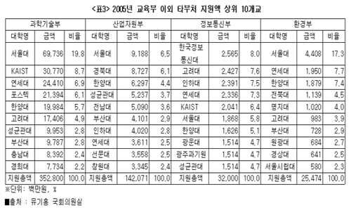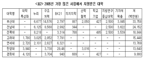 ±³À°ºÎ·ÎºÎÅÍ ÁýÁß ¼öÇý¸¦ ¹ÞÀº ´ëÇеéÀÌ Å¸ºÎó Áö¿ø»ç¾÷¿¡¼µµ Àý´ëÀûÀÎ ºñÁßÀ» Â÷ÁöÇϰí ÀÖ´Â Çö½Çµµ ¹®Á¦·Î ÁöÀûµÆ´Ù. ŸºÎó¿Í Áö¿ø»ç¾÷°ü·Ã ¿¬°è¿Í Á¶Á¤ÀÌ ºÎÁ·Çß´Ù´Â ºÐ¼®ÀÌ´Ù.