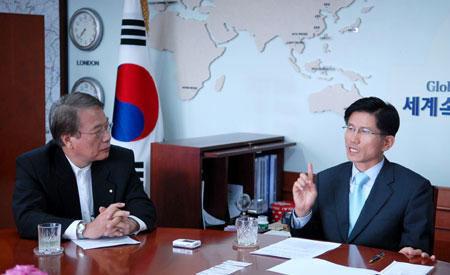 | ¡ã º»Áö ÀÌÀοø ȸÀå(¿ÞÂÊ)ÀÌ ÃëÀÓ 1¹éÀÏÀ» ¸ÂÀº ±èÁö»ç¿Í ´ë´ãÇϰí ÀÖ´Ù./ÇÑ¸í¼· ±âÀÚ |