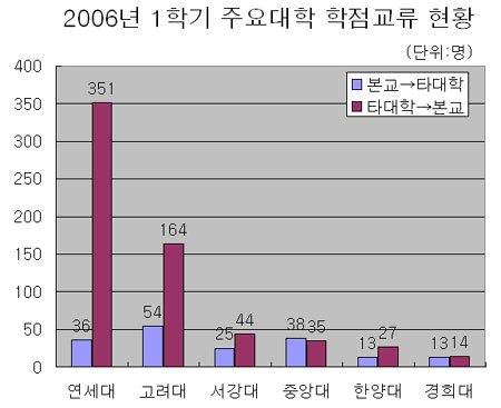 ¹Ý´ë·Î ´Ù¸¥ ´ëÇп¡¼ ¿¬¼¼´ë¿Í °í·Á´ë·Î ¿Â Çлý¼ö´Â °¢°¢ 351¸í°ú 164¸íÀ» ±â·ÏÇß´Ù. ¼°´ë 44¸í, Áß¾Ó´ë 35¸í, ÇѾç´ë 27¸í, °æÈñ´ë 14¸í Á¤µµ·Î ´ëÇеéÀÇ ÇÐÁ¡±³·ùÁ¦µµ ÀÌ¿ëÀº ÀúÁ¶ÇÑ ¼öÁØÀÌ´Ù.