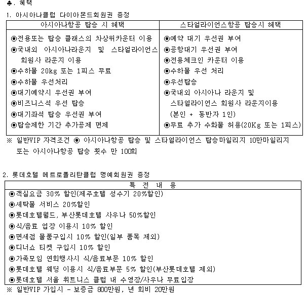 ÀϹÝȸ¿øÀÌ ¸ÞÆ®·ÎÆú¸®Åº Ŭ·´ ¸í¿¹È¸¿ø±ÇÀ» ÃëµæÇÏ·Á¸é º¸Áõ±Ý 800¸¸¿ø°ú ¿¬ ȸºñ 20¸¸¿øÀ» ºÎ´ãÇØ¾ß Çϸç, ¾Æ½Ã¾Æ³ª-´ÙÀ̾Ƹóµåȸ¿ø±ÇÀ» ¾òÀ¸·Á¸é ¸¶Àϸ®Áö 10¸¸ ¸¶ÀÏÀ» ´©ÀûÇϰųª ¾Æ½Ã¾Æ³ªÇ×°ø ž½Â 100ȸ¸¦ ±â·ÏÇØ¾ß ÇÑ´Ù.