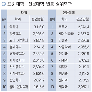 Àü¹®´ëÇÐ Çаú Áß¿¡¼´Â Åä¸ñ°ú°¡ 2,374¸¸¿øÀ¸·Î ¿¬ºÀÀÌ °¡Àå ³ô¾Ò´Ù. À̾î Á¦¾î°èÃøÇаú(2,337¸¸¿ø), °Ç¼³°ú(2,337¸¸¿ø), ÀÚµ¿Â÷°ú(2,266¸¸¿ø),Àü±â°ú(2,231¸¸¿ø) ¼øÀ¸·Î ³ôÀº ¿¬ºÀÀ» ¹Þ¾Ò´Ù.
