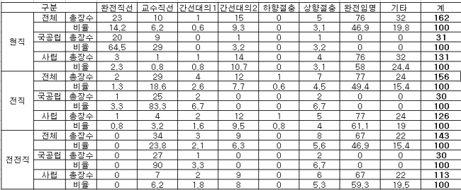 ¹Ý¸é »ç¸³´ë´Â ¡®ÀüÁ÷¡¯°ú ¡®ÀüÀüÁ÷¡¯ ÃÑÀå¼±Ãâ¿¡¼ ¿ÏÀüÀÓ¸íÁ¦¸¦ ½Ç½ÃÇÑ ´ëÇÐÀÌ °¢°¢ 77°³±³(61.1%), 67°³±³(59.3%)·Î ³ªÅ¸³ª ºñ½ÁÇÑ ¼öÁØÀ» À¯ÁöÇß´Ù. ÇöÁ÷Àº 131°³±³ Áß 76°³±³(58%)°¡ ¿ÏÀü ÀÓ¸íÁ¦·Î ÃÑÀåÀ» ¼±ÃâÇß´Ù. ¹Ý¸é ¿ÏÀü Á÷¼±Á¦¸¦ ½Ç½ÃÇÏ´Â »ç¸³´ë´Â ÀüÁ÷¿¡¼´Â 1°³±³, ÇöÁ÷¿¡¼´Â 3°³±³¿¡ ±×ÃÄ ¹Ì¹ÌÇÑ ¼öÁØÀ» º¸¿´´Ù. ±³¼öÁ÷¼±Á¦À» ÅëÇÑ ¼±ÃâÀº ÀüÁ÷¿¡¼ 4°³±³, ÇöÁ÷¿¡¼´Â 1°³±³·Î Á¡Â÷ ÁÙ¾îµå´Â Ãß¼¼¸¦ º¸¿´´Ù. ¿¬±¸¼ÒÃøÀº ¡°»ç¸³´ë¿¡¼ ÇÑ ¶§ 40¿© °÷±îÁö È®´ëµÆ´ø ±³¼öÁ÷¼±Á¦°¡ ¿ÏÀüÈ÷ »ç¶óÁ®°¡°í ÀÖÀ½À» º¸¿©Áش١±¸ç ¡°ÀÌ´Â ±¹°ø¸³´ë Áß¿¡¼ Á¡Â÷ Á÷¿ø°ú Çлý±îÁö Âü¿©½ÃŰ´Â ¡®¿ÏÀüÁ÷¼±Á¦¡¯¸¦ µµÀÔÇÏ´Â ´ëÇеéÀÌ ´Ã°í ÀÖ´Â Ãß¼¼¿Í ´ëÁ¶¸¦ ÀÌ·ç´Â °Í¡±À̶ó°í ºÐ¼®Çß´Ù.