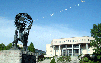 ¼µÑ·¯ Áö¸§±æ·Î ã¾Æ°¡´Â ÇлýµéÀ» µÚÂѾÆ, ¿¬ÀûÁö ¿À¸¥ÆíÀÇ ¾ð´ö¿¡ ¿À¹ÐÁ¶¹ÐÇÏ°Ô ¹ÚÈù ³ª¹«°è´ÜÀ» ¿À¸£¸é ´ëÇк»ºÎ¿Í Áß¾Ó¹Ú¹°°üÀÌ ÇÔ²² ³ªÅ¸³´Ù. ´ëÇк»ºÎ ¾ÕÂÊÀ¸·Î´Â ³ô´Ù¶õ µî´ë ¸ð¾çÀÇ Á¶Çü¹°ÀÌ, µÚÂÊÀ¸·Î´Â Á¤°¥ÇÑ Àܵð¹çÀÌ Ãß»óÁ¶°¢»ó°ú ÇÔ²² ÀÚ¸®Àâ°í ÀÖ´Ù.