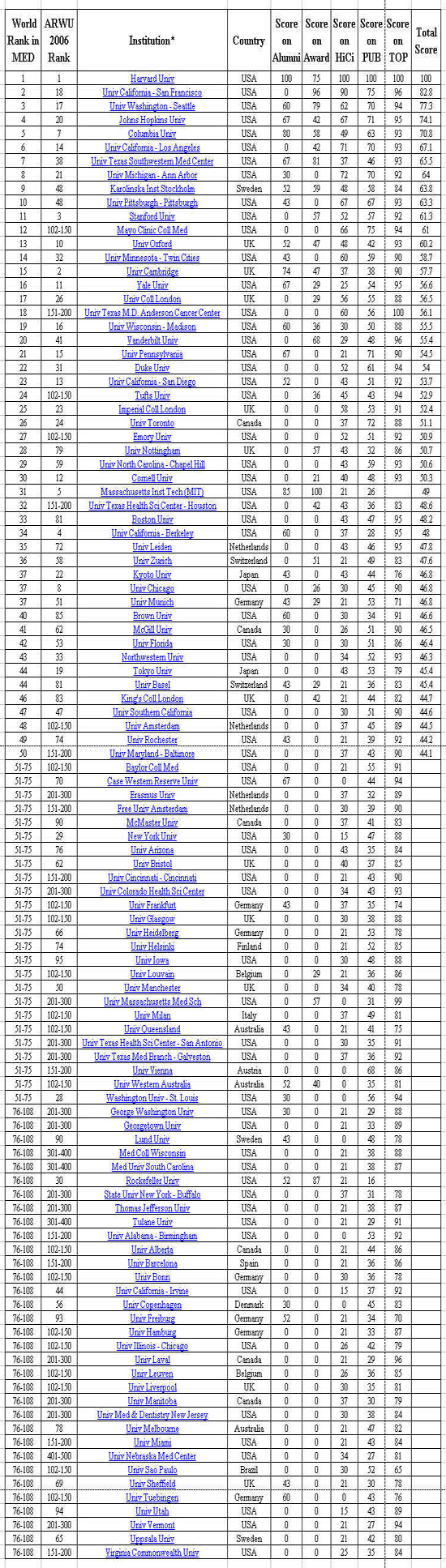 <Ç¥> ¼¼°è ´ëÇÐ ¼øÀ§ - ÀǾàÇÐ