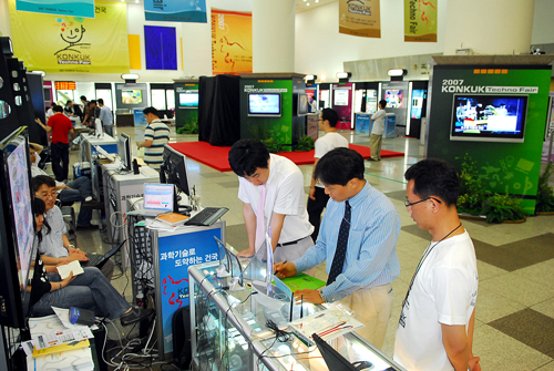 °³±³±â³äÀÏÀÎ 5¿ù 15ÀÏ¿¡ ¸ÂÃç Å×Å©³ë Æä¾î°¡ °³Ãֵǰí, »êÇÐÇù·Â´Ü ¼Ò½ÄÁöÀÎ 'KU R&D Frontier'°¡ â°£µÆ´Ù. µÎ°¡Áö ´Ù °Ç´ëÀÇ ¿¬±¸ ¿ª·®À» ¾Ë¸®±â À§ÇÑ ³ë·ÂÀÌ´Ù. ¿À¸í ÃÑÀåÀº °³±³±â³ä½Ä¿¡¼ "Ư¼ºÈ¸¦ À§ÇØ 10°³ ¿¬±¸Áý´ÜÀº ¼¼°è 30À§±Ç ¿¬±¸·ÂÀ» °®Ãßµµ·Ï Çϰí, ¿ÜºÎ ¿¬±¸ºñ¸¦ 1,000¾ï ¿ø ¼öÁØÀ¸·Î È®´ëÇϰڴÙ"°í ¹àÇû´Ù. ±×ÀÇ ¸» ¼Ó¿¡´Â ¿¬±¸·Â Áõ´ë¸¦ ÅëÇÑ ¹ßÀü ¹æ¾ÈÀÌ ´ã°ÜÀÖ´Ù. 2011³â±îÁö 5´ë ¸í¹®»çÇÐÀ¸·Î µµ¾àÇϰڴٴ 'µå¸²°Ç±¹ 2011'ÀÇ ½ÇÇöÀº »êÇÐÇù·Â°ú ¿¬±¸ ºÐ¾ß¿¡¼ ±¸Ã¼ÈµÉ °¡´É¼ºÀÌ ³ô´Ù.