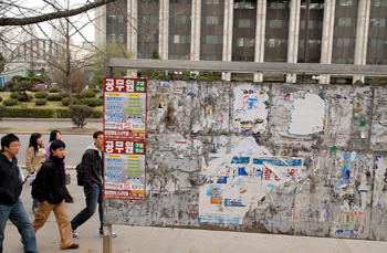 | ¡ã ¹é¾ç·Î º¯¿¡ ¼³Ä¡µÈ °Ô½ÃÆÇ µÚ¸é¿¡ ¼ö¾øÀÌ ºÙ¿´´Ù ¶¼¾î³½ '¼¼¿ù'ÀÇ ÈçÀûÀÌ ³²¾Æ ÀÖ´Ù./ÇÑ¸í¼· ±âÀÚ |