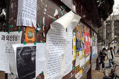 ÀÌ °ü°èÀÚ´Â ¡°´Üü¸í, ¿¬¶ôó, °Ô½Ã±â°£ µî¿¡ °ü·ÃµÈ ±¸Ã¼Àû ±Ô¾àÀº ¾ø´Ù. ´Ù¸¸ ÇлýÁö¿øºÎÀÇ °ËÀÎ °úÁ¤À» °ÅÃÄ Æ÷½ºÅÍ´Â 20°³ ÀÌÇÏ, Çö¼ö¸·Àº 1°³¸¸ °Ô½ÃÇϵµ·Ï Çϰí ÀÖ´Ù¡±°í ¹àÇû´Ù. ±×³ª¸¶µµ ÇлýµéÀÌ ºÎÂøÇÏ´Â °Ô½Ã¹°Àº °ËÀÎÀ» ¹Þ´Â °æ¿ì¸¦ °ÅÀÇ Ã£¾Æº¼ ¼ö ¾ø´Ù´Â ¼³¸íÀÌ´Ù.